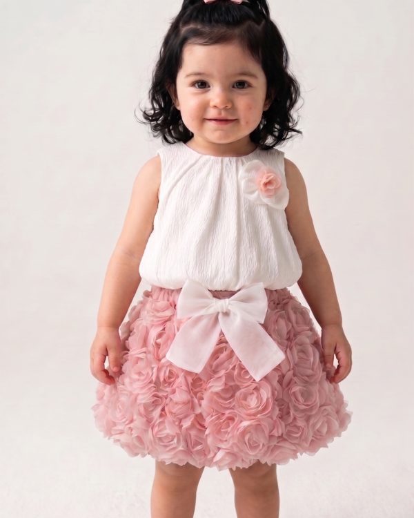 BERRY Kız Çocuk Bebek Gül Detaylı Kabarık Tütü Etekli 2’li Takım