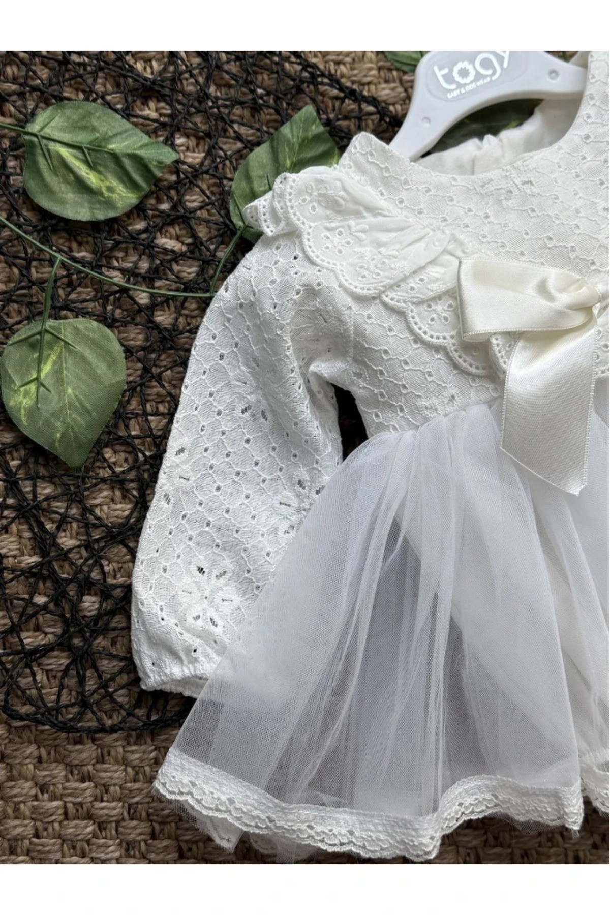 LOLA Kız Bebek Dantel Detaylı Uzun Kollu Özel Gün Bayramlık Abiye Elbise