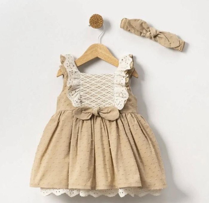ELİSE Krem Yumuşak Tütü Romper Uzun Kollu Kız Bebek Elbise