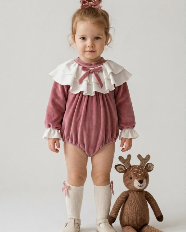 BRIELLA Uzun Kollu Özel Gün Bayramlık Fiyonk Detaylı Kız Bebek Romper