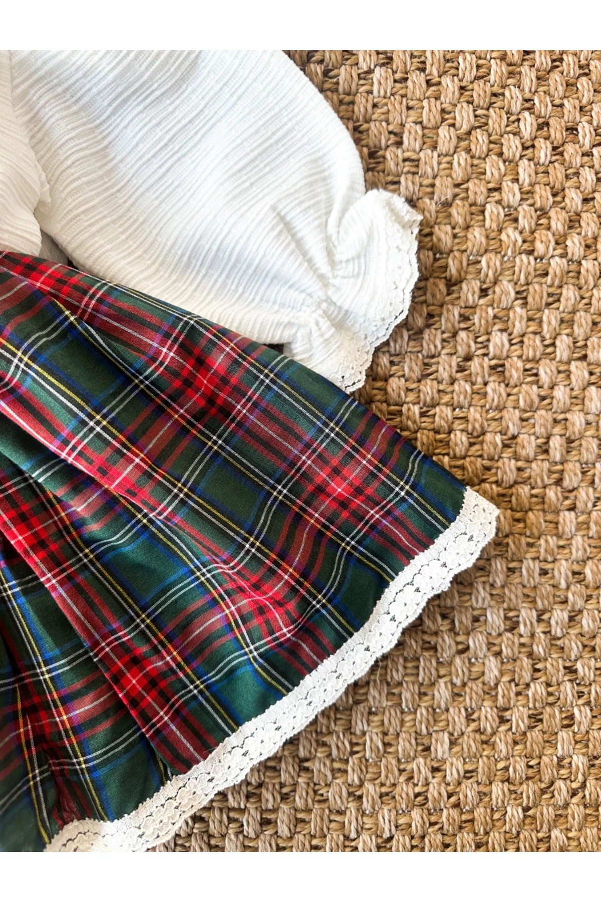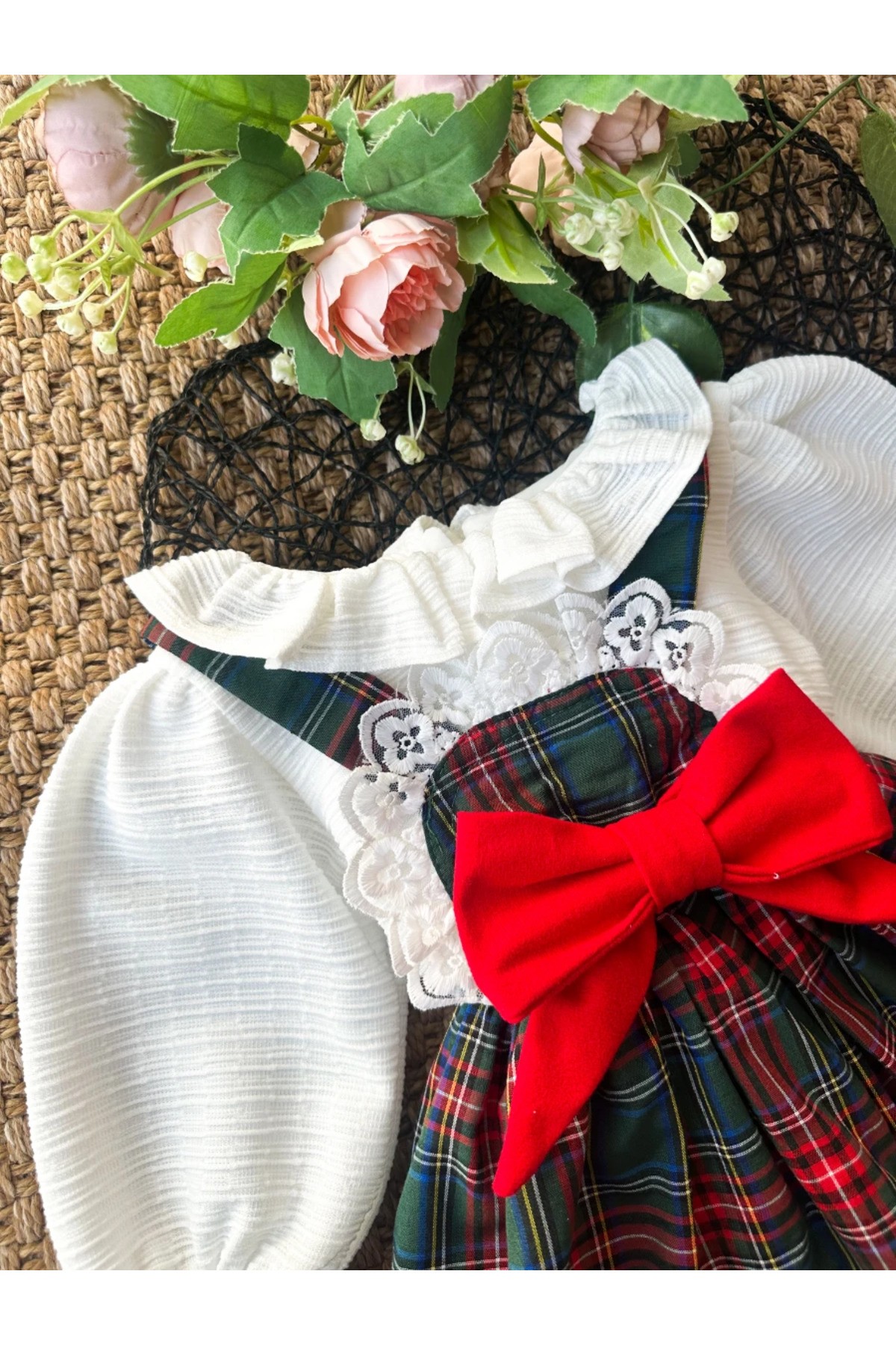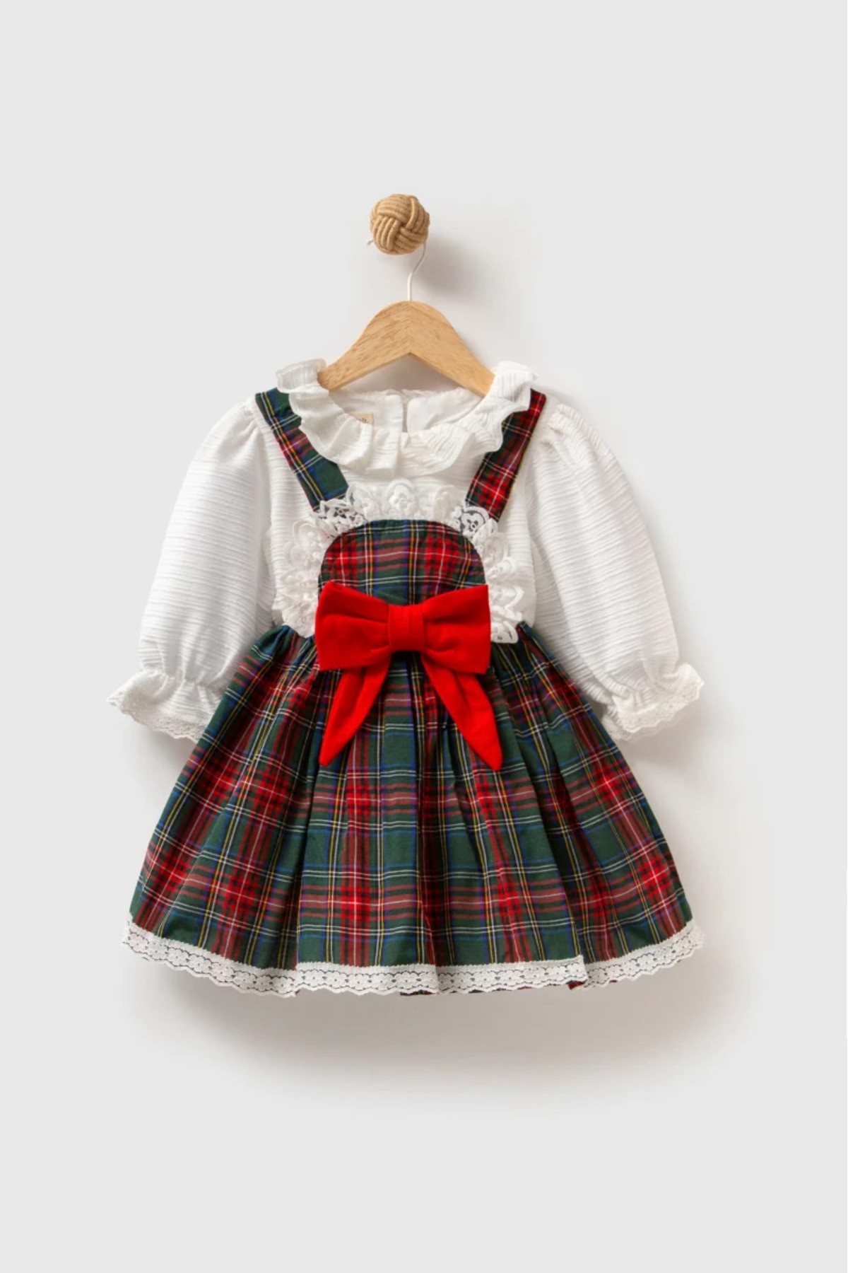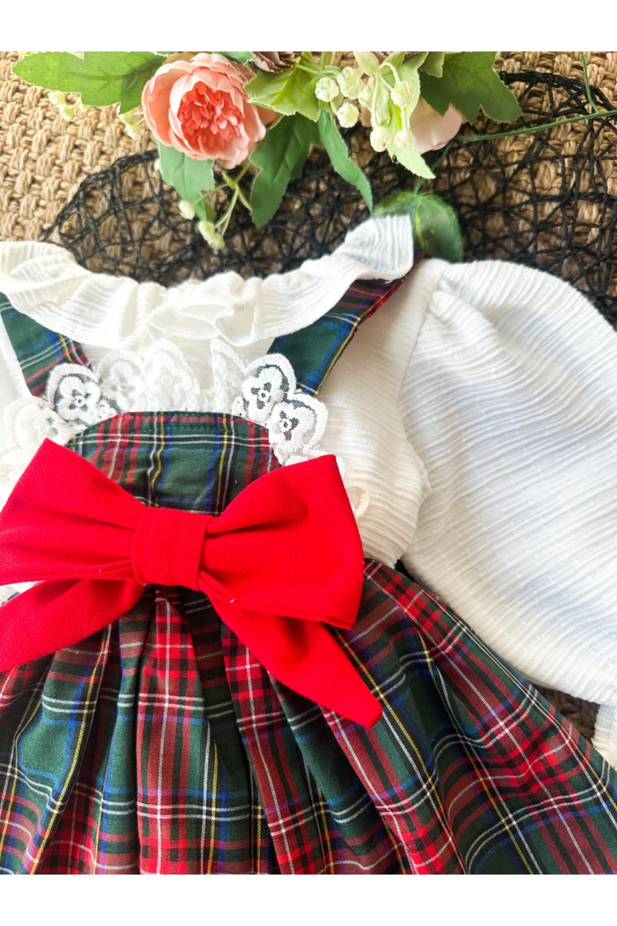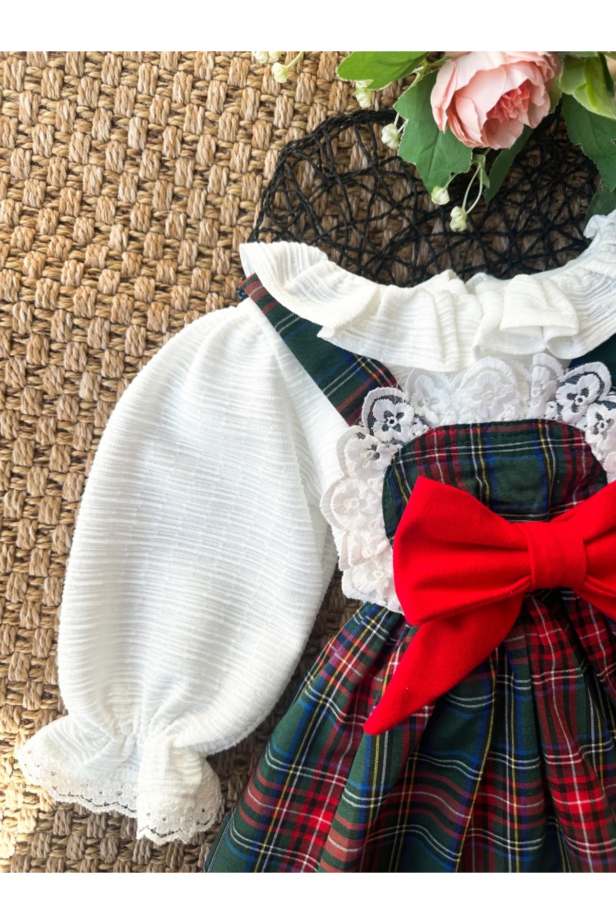 BELİNAY Kız Çocuk Yılbaşı Uzun Kol Tütü Prenses Ekoseli Vintage Elbise
