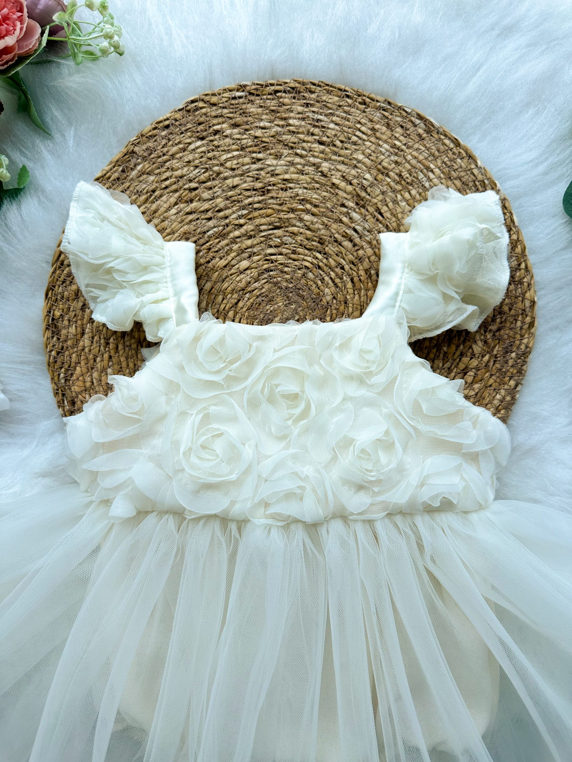 Bella Gül Detaylı Bayramlık Özel Gün Kız Çocuk Bebek Romper