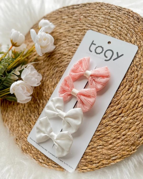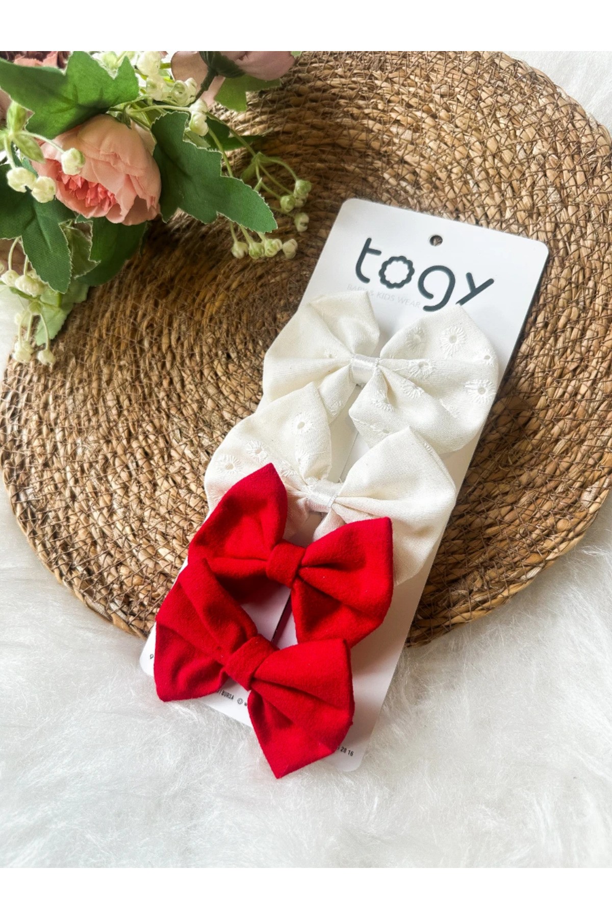 Kırmızı ve Beyaz Fiyonk Kız Çocuk Bebek Toka Seti