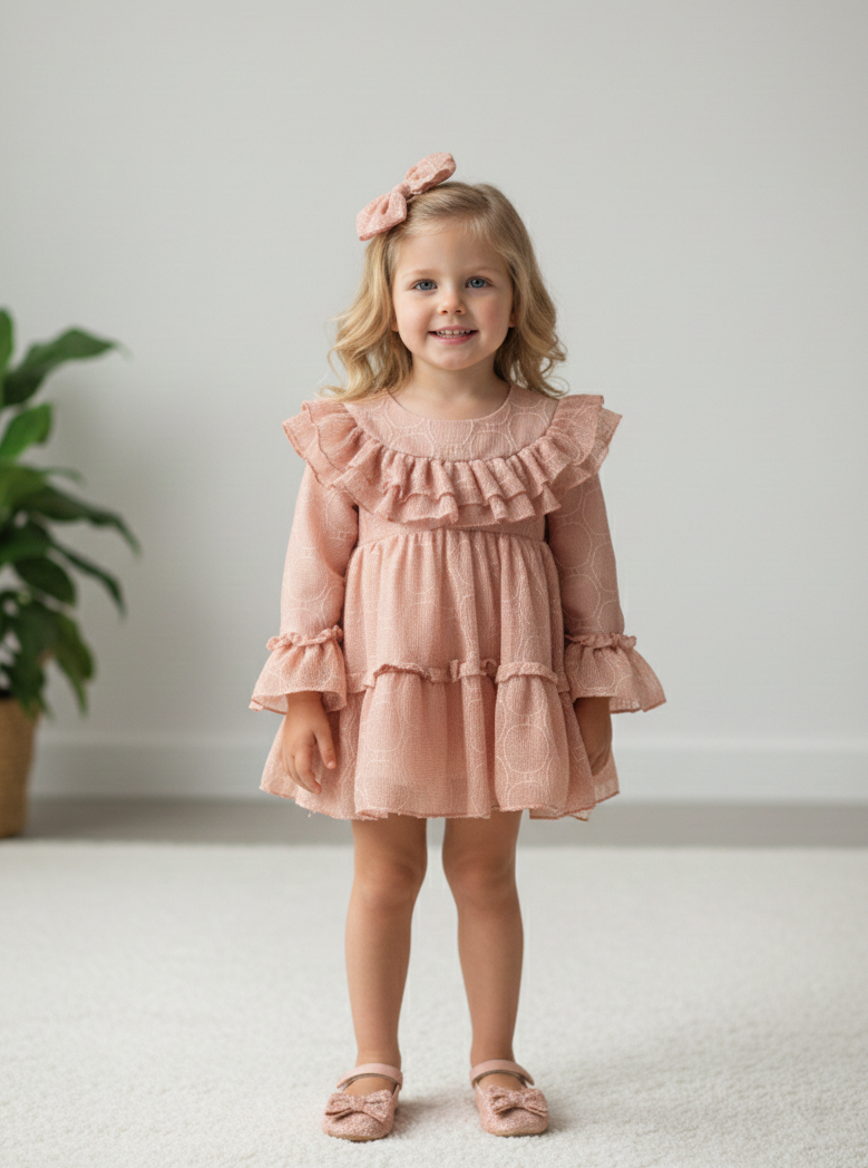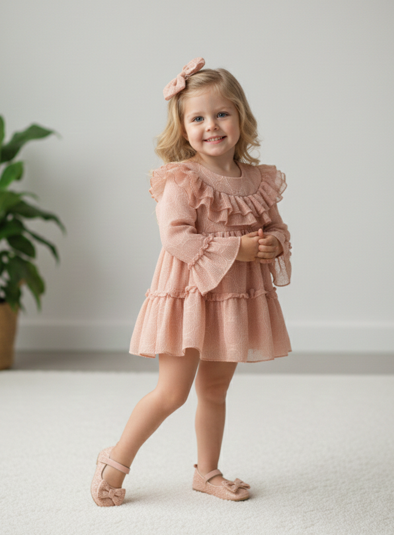 ROSE Gül Detaylı Kız Çocuk Bayramlık Özel Gün Elbise