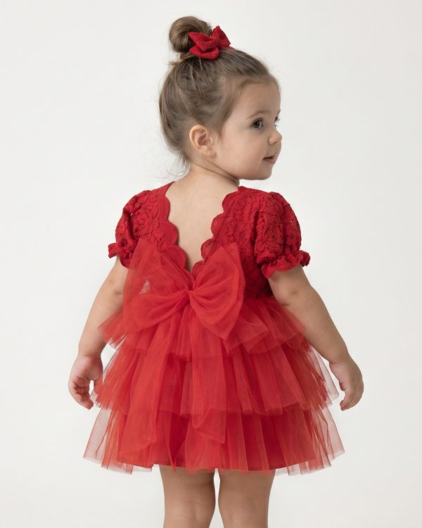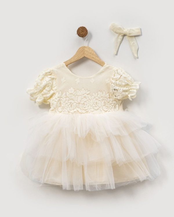 LORA Kalp Detaylı Tokalı Tül Etekli Özel Gün Bayramlık Kız Çocuk Elbise