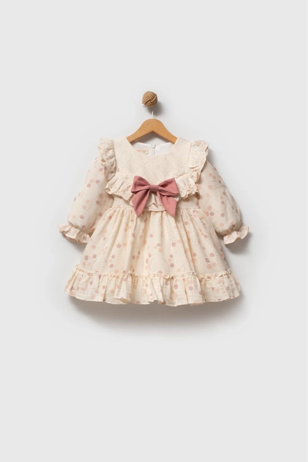 LİNA Uzun Kollu Kurdele Detaylı Kız Çocuk Özel Gün Bayramlık Elbise