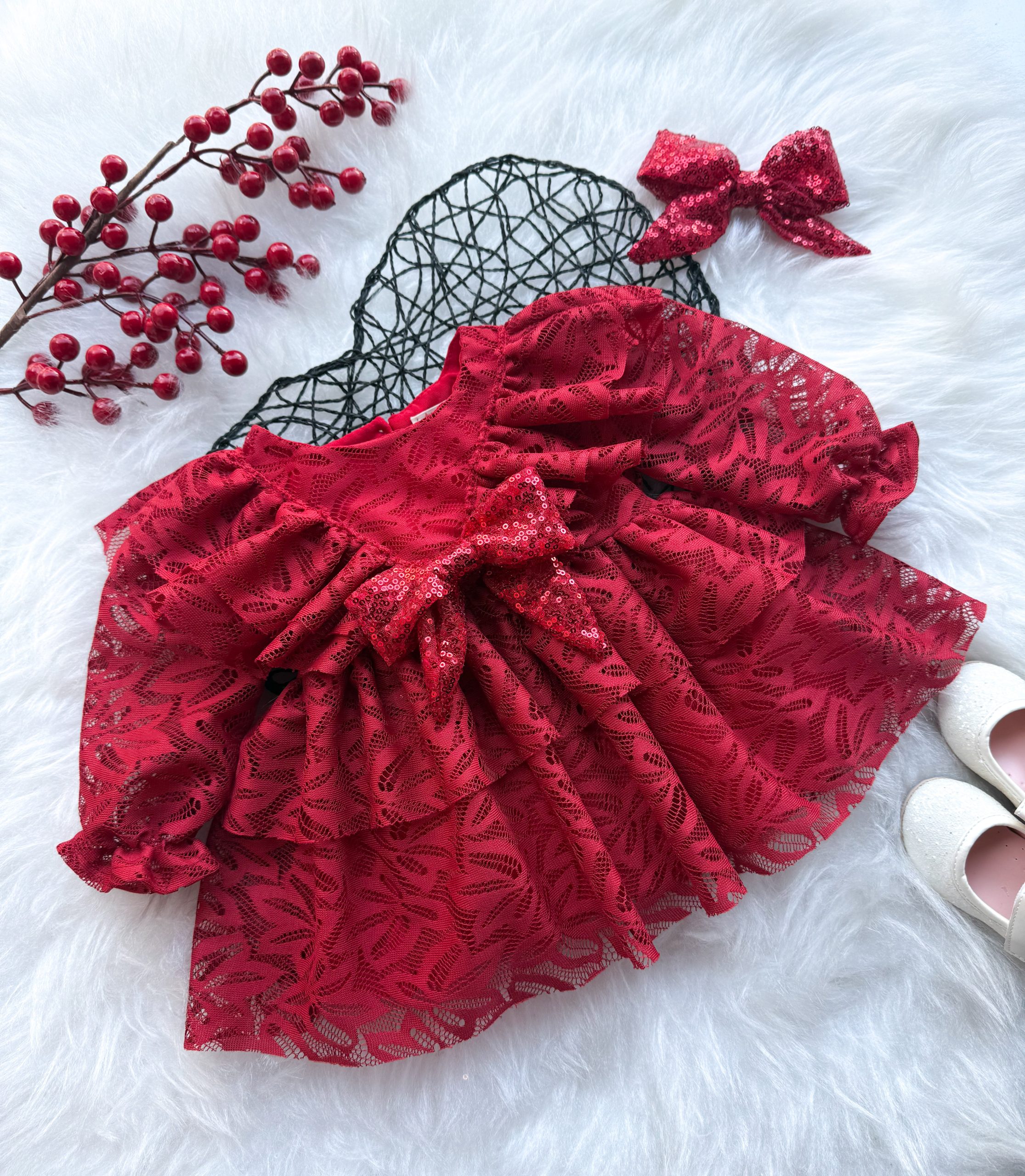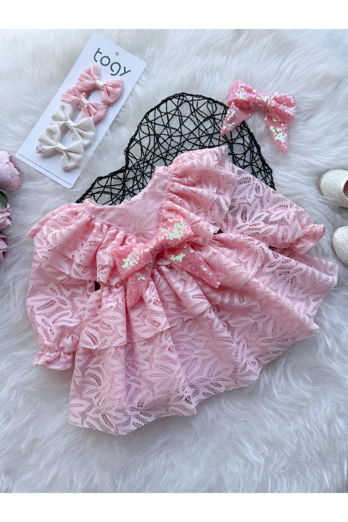 LOLA Kız Bebek Dantel Detaylı Uzun Kollu Özel Gün Bayramlık Abiye Elbise