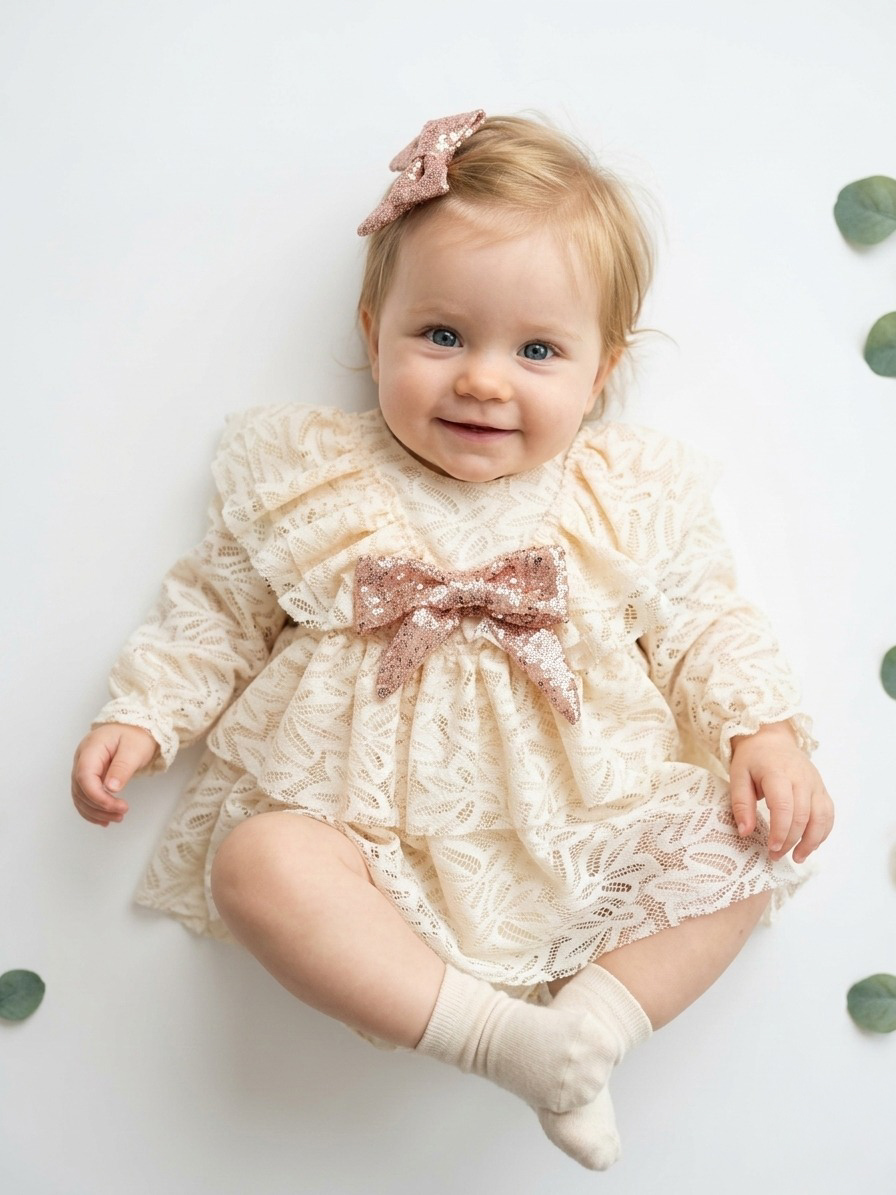GALE Uzun Kollu Dantel Detaylı Özel Gün Bayramlık Kız Bebek Romper