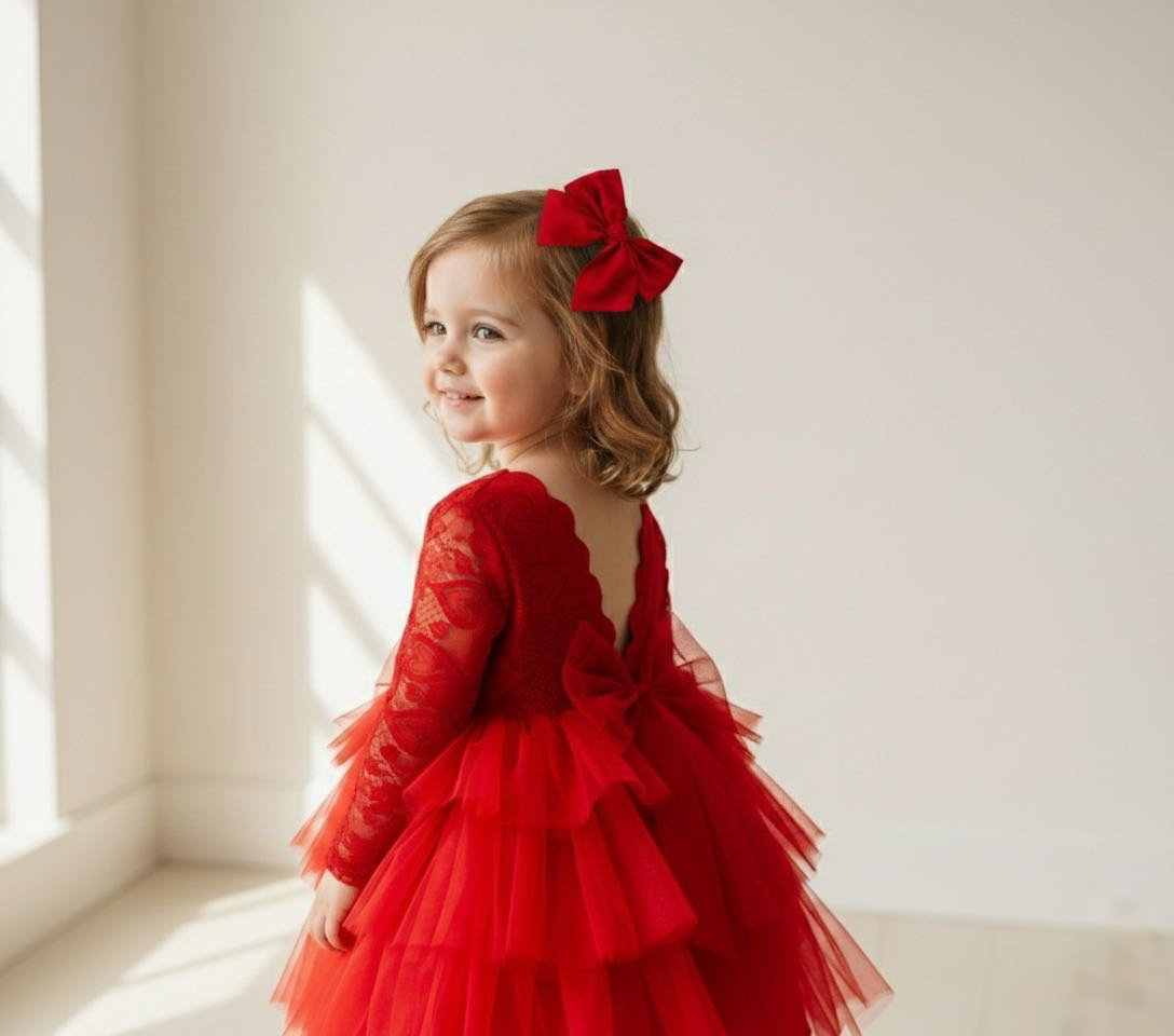 ALESSİ Kız Çocuk Yılbaşı Uzun Kol Tütü Prenses Ekoseli Vintage Elbise