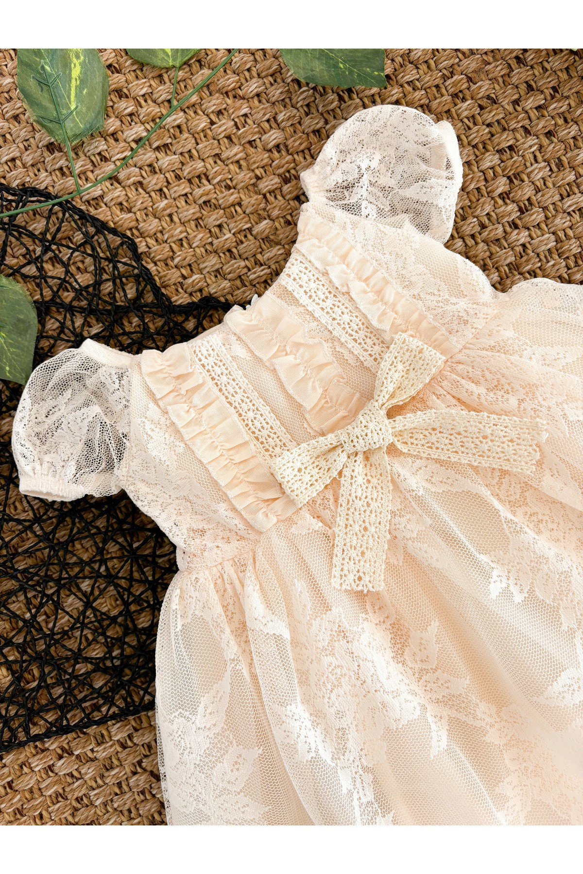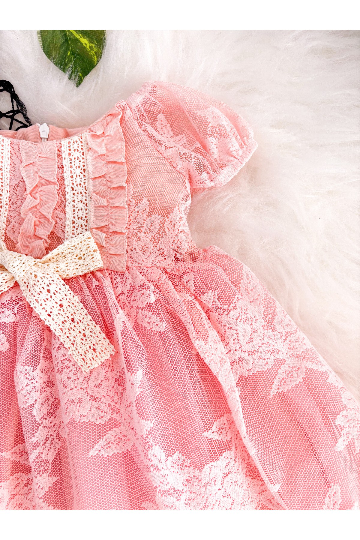 AMELIA Leopar Desenli Dantel Yaka Detaylı Fiyonklu Kız Bebek Çocuk Romper
