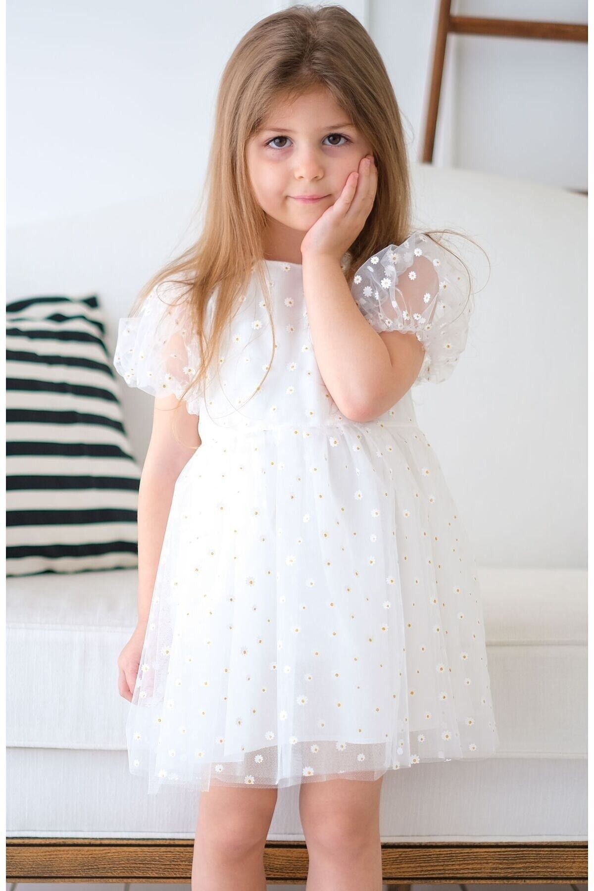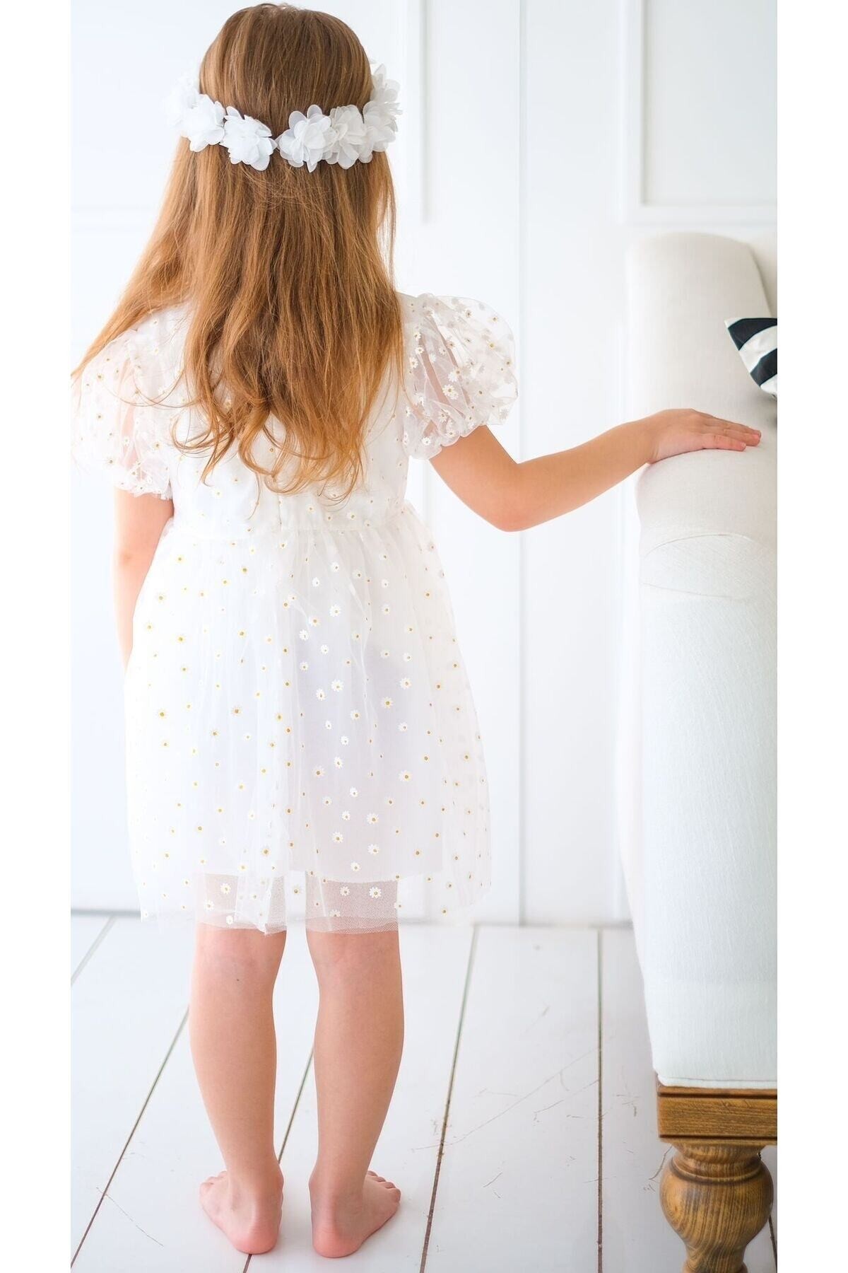 Papatya Kız Çocuk Elbisesi Özel Gün Düğün Doğum Günü