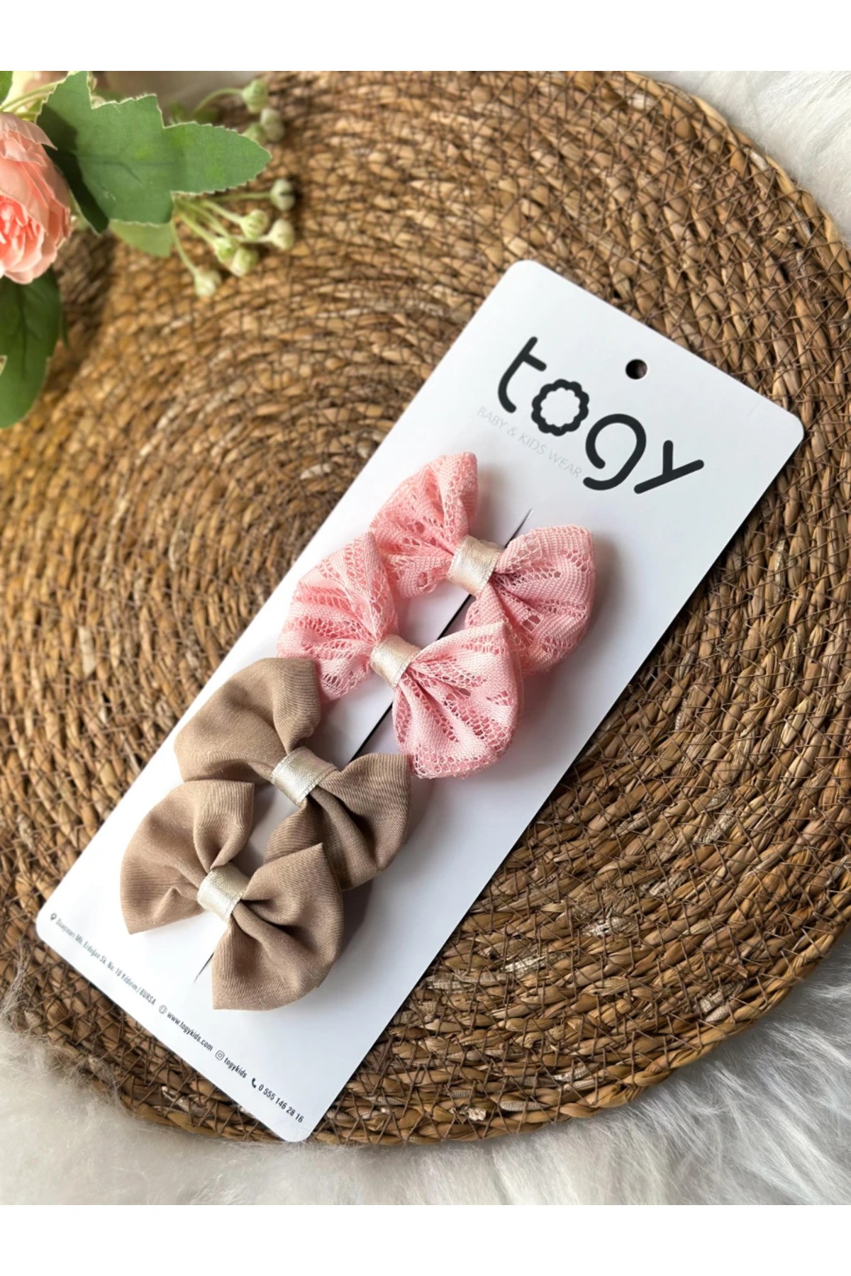 Pembe Dantel Detaylı Ve Kahverengi Kız Çocuk Bebek Toka Seti