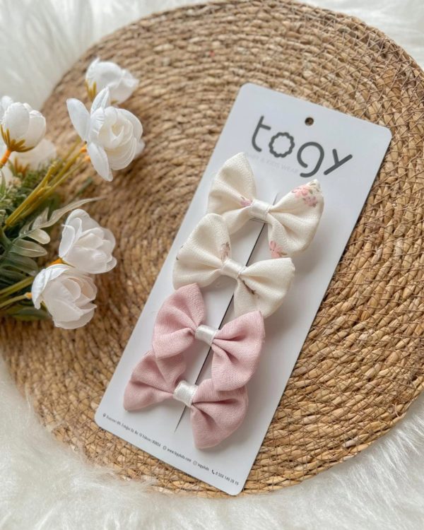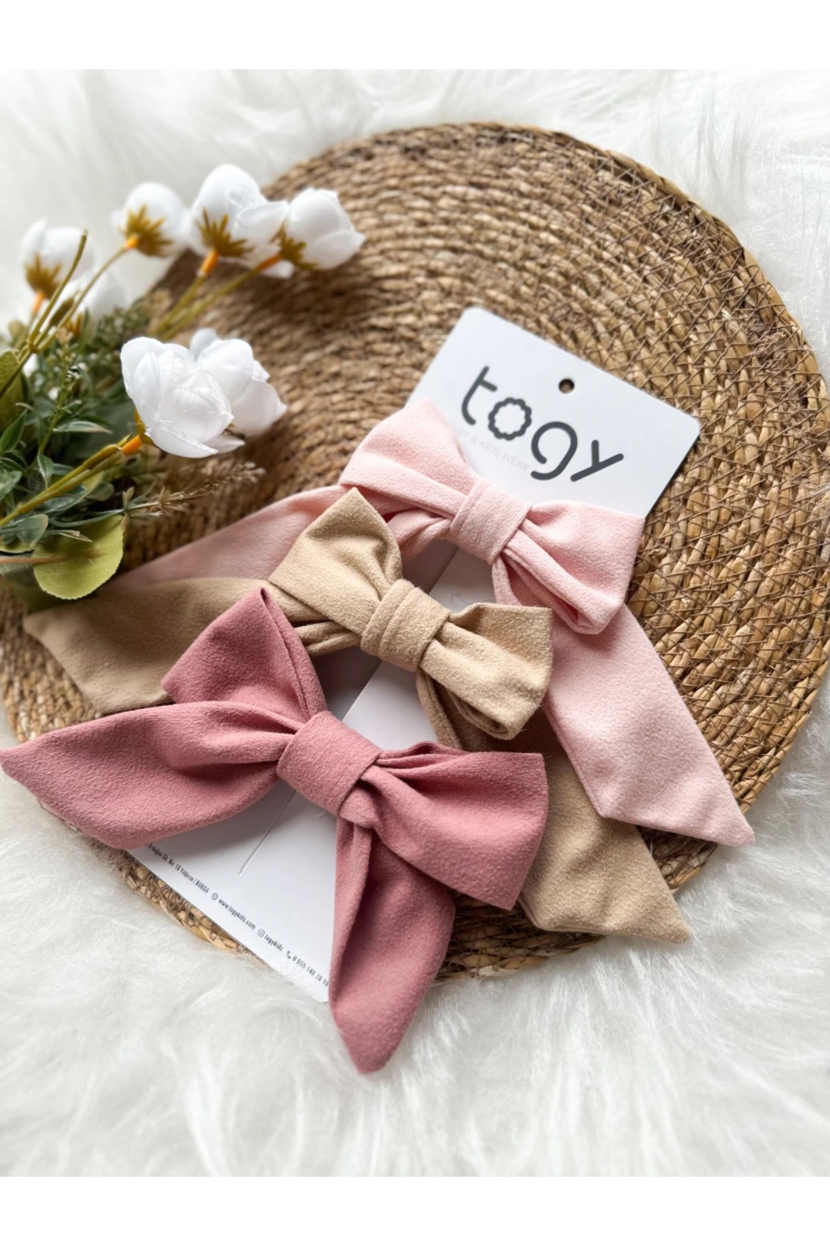 Pudra,Bej,Gül Kurusu Fiyonk Kız Çocuk Bebek 3 Lü Toka Seti