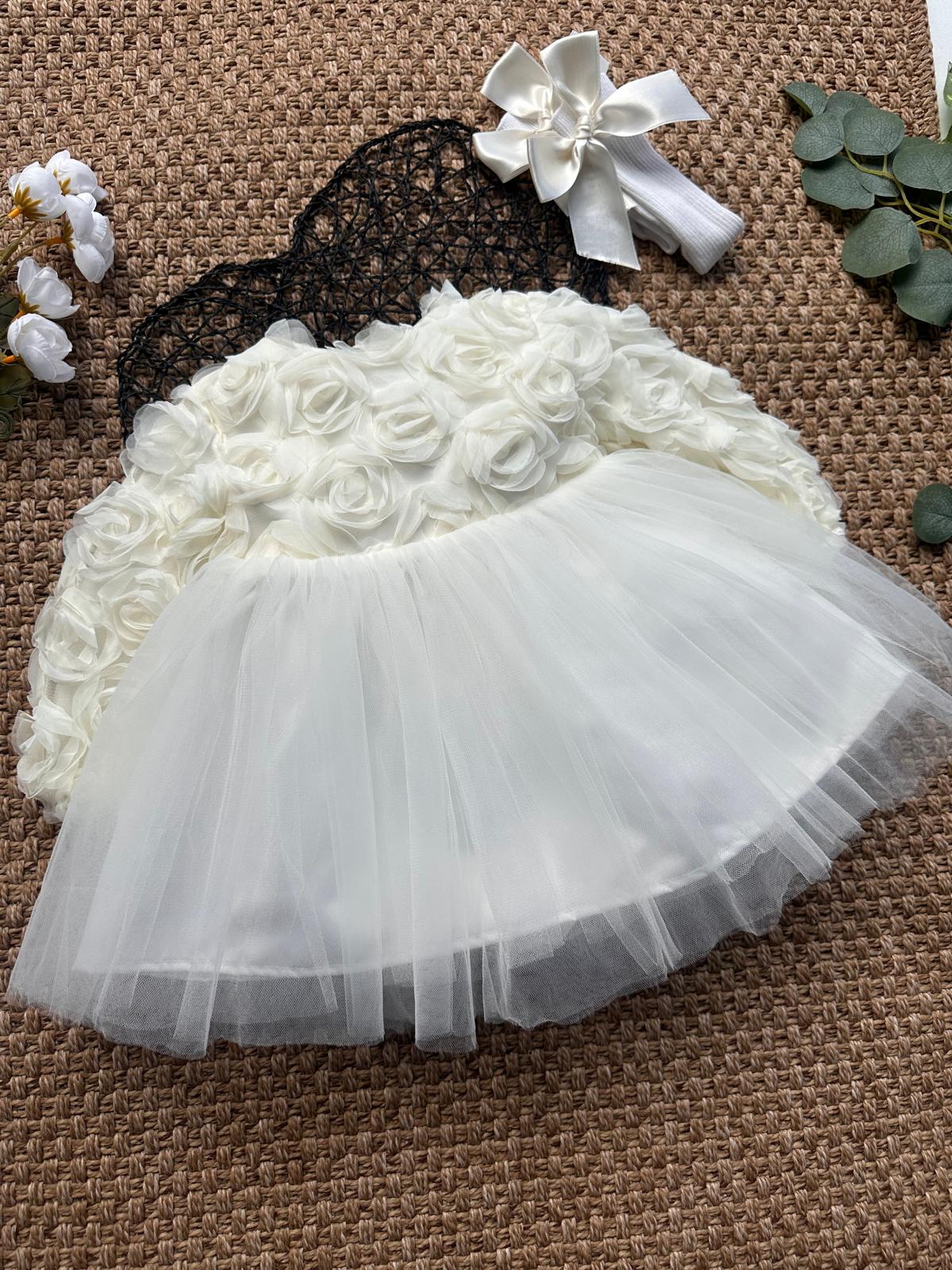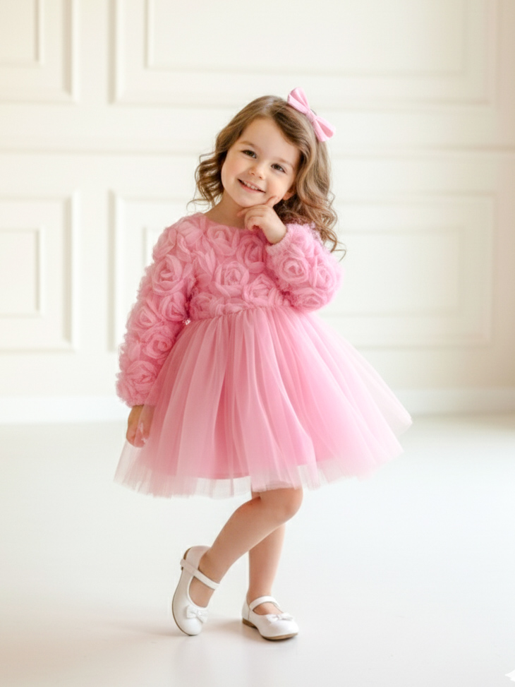 ROSE Gül Detaylı Kız Çocuk Bayramlık Özel Gün Elbise