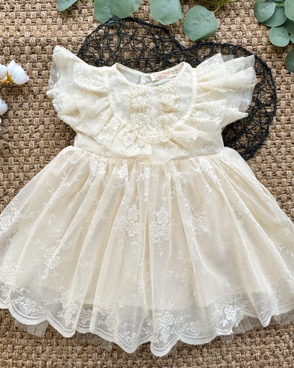 Yasemin 2 Dantel Detaylı Bayramlık Özel Gün Kız Çocuk Bebek Elbise